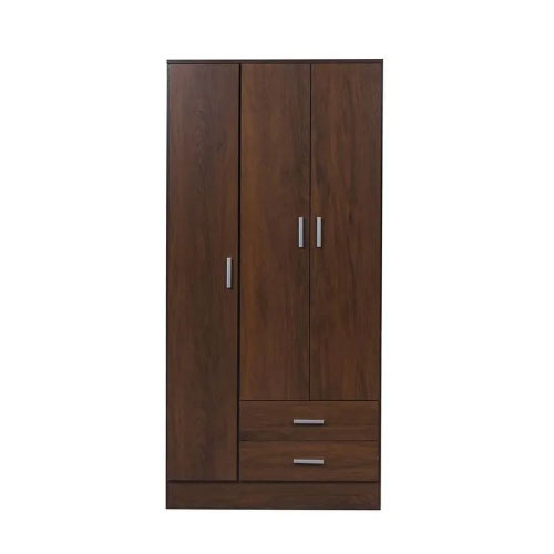 El PLACARD RICCHEZZE 86CM TANA ECO CAFFÉ 3-00-091-37 está fabricado en melamina, lo que garantiza durabilidad y resistencia. Cuenta con tres puertas y dos cajones, ofreciendo un amplio espacio de almacenamiento y una solución práctica para mantener todo organizado.