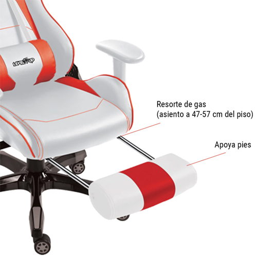La Silla Gamer Level Up River Plate cuenta con chasis multifuncional, resorte de gas ajustable y apoya pies extensible, brindando una estructura robusta y adaptable. Su marco de acero sólido soporta hasta 90 kg, garantizando resistencia y estabilidad en cada uso.