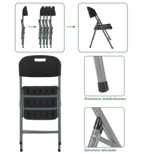 La Silla Plegable Garden Life Paris T410001 Negra resulta ideal para eventos, jardines, balcones o comedores ocasionales, y combina perfectamente con mesas tipo picnic u otras superficies de apoyo. Su estructura está pensada para facilitar el transporte y el guardado, permitiendo optimizar el espacio cuando no se encuentra en uso.