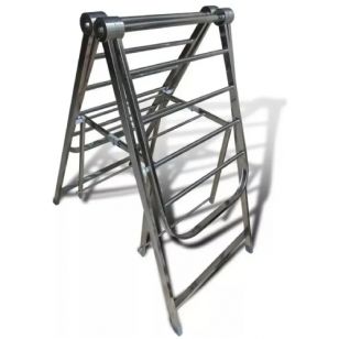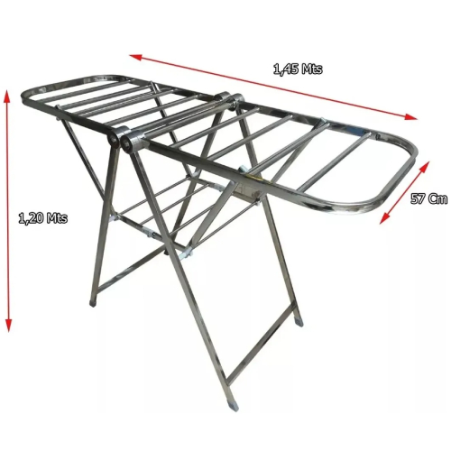 La Tendedero Reforzado Herramix 14 Varillas TEN-001 está fabricado en acero inoxidable con terminaciones pulidas, ofreciendo gran resistencia y durabilidad. Su diseño compacto permite ahorrar espacio y se pliega totalmente cuando no se utiliza, sin necesidad de armado.