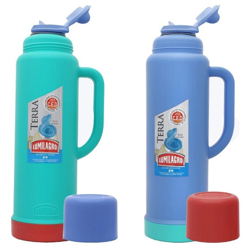 El Termo Lumilagro Terra 1L LUM0827 es liviano y resistente, su novedosa doble botella plateada con sistema CED patentada, le permite mantener líquidos fríos o calientes durante mucho más tiempo.