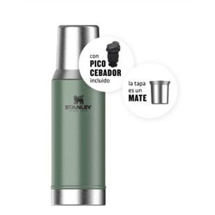 El TERMO MATE STANLEY SYSTEM CLASSIC 800 ML VERDE 10-10296-017 tiene una tapa de acero inoxidable se convierte en un mate para que puedas disfrutar de la bebida en cualquier lugar. Además, el termo mantiene tu agua a la temperatura ideal para que puedas disfrutar de tu mate caliente por más tiempo.