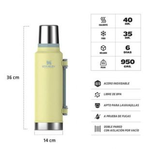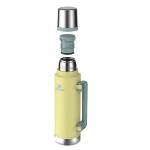 El TERMO STANLEY CLÁSICO 1.4L POMELO 10-08999-085 está hecho en acero inoxidable 18/8 sin BPA, garantizando una opción segura y duradera. Su doble pared con aislamiento al vacío permite conservar eficazmente la temperatura de bebidas. Podes usar la tapa como taza.