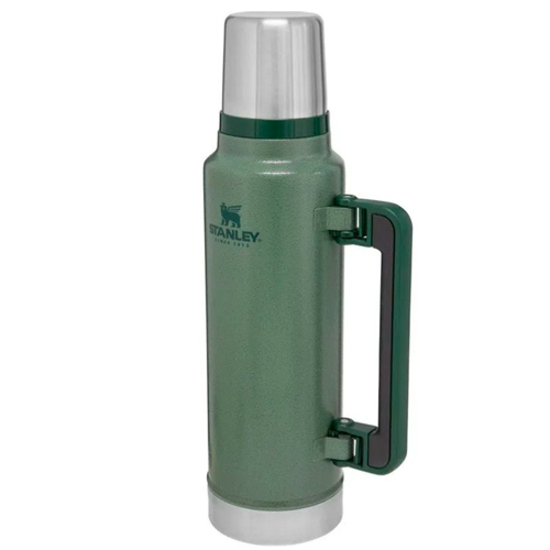 Fabricado en acero inoxidable 18/8 libre de BPA, el Termo Stanley Classic 1,4L 10-13239-006 es a prueba de fugas, apto para lavavajillas y cuenta con tapa que funciona como taza, además de un mango plegable para mayor comodidad.