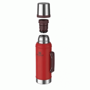 El TERMO CLÁSICO STANLEY tiene una capacidad de 1,4. Es de acero inoxidable 18/8 y gracias a su aislamiento de doble pared al vacío mantiene las bebidas calientes o frías 40 horas o heladas (con hielo) más de 140 horas.