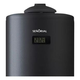 El TERMOTANQUE SEÑORIAL ALTA RECUPERACIÓN 75LTS L BLACK 330090 tiene un diseño compacto, con una altura de 97,6 cm y un diámetro de 43,8 cm, además de pesar 33,5 kg. Incluye un indicador de temperatura digital para un control preciso y está certificado por el Instituto del Gas Argentino (IGA), garantizando su calidad y seguridad.