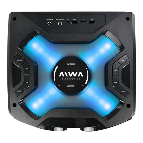 La Torre de Sonido Aiwa AW-T2008-PB siendo de una portabilidad tal y pudiendo usar hasta 2 micrófonos y una guitarra, permite realizar presentaciones reducidas en vivo. Tanto en bares, espacios públicos, streamings y vivos de redes sociales. Posee una potencia de 13000 Watts y un Woffer/tweeter de 2x8"/1x2".