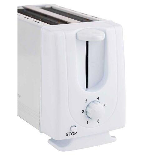 La TOSTADORA KANJI 2 RODAJAS BLANCA KJH-TM800SEC01 con una potencia de 800W y 6 niveles de tostado proporciona la flexibilidad necesaria para obtener el dorado ideal en cada rebanada. Su diseño compacto y funcional la hace perfecta para cualquier cocina, combinando eficiencia y comodidad en su uso diario.