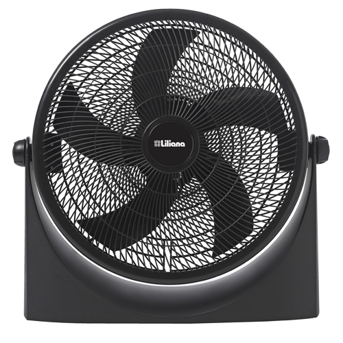 El Turbo Ventilador Liliana VTF18P tiene un cabezal reclinable de 18" de diámetro, parrilla plástica espiralada y una hélice de 5 aspas negras. Además cuenta con base antideslizante que le da estabilidad en casi cualquier tipo de superficie.