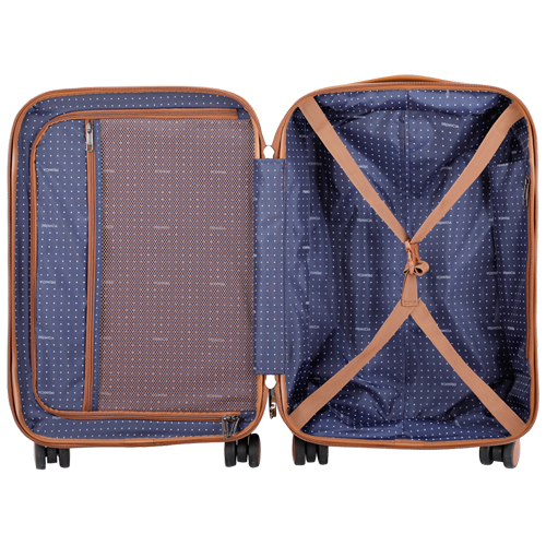 En el interior de la Valija Cabina Primicia 20" Windsor, encontrarás un tejido antimicrobiano 200D que protege tus pertenencias, un bolsillo de Mesh, un bolsillo opaco y una solapa interior con cierres dobles. Las cintas de compresión ajustables aseguran un orden óptimo durante tus viajes, haciendo que cada trayecto sea una experiencia refinada.