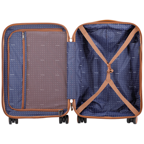 El interior de la Valija Cabina Primicia 24" Windsor cuenta con un tejido antimicrobiano 200D que protege tus pertenencias. Integra un bolsillo de Mesh, un bolsillo opaco, una solapa interior con cierres dobles y cintas de compresión ajustables, lo que asegura un óptimo orden y organización en cada trayecto