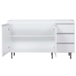 Además, el Bajo Mesada Ricchezze 1.40m Arco Blanco Aluminio 3-16-047-86 cuenta con correderas metálicas en los cajones, bisagras de cierre automático y tiradores de aluminio anodizado, asegurando confort, resistencia y un uso diario práctico.