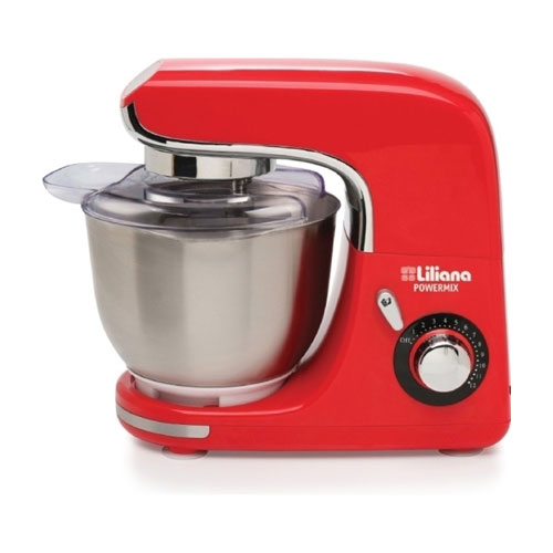 La Batidora Planetaria Liliana Powermix AB910 tiene un atractivo diseño retro en color rojo. Viene con un bowl de acero inoxidable con 4 litros de capacidad y tapa para evitar salpicaduras. Además, incluye distintos accesorios como batidor de alambre para masas livianas, batidor plano para mezclas espesas y amasador para masas de gran consistencia.