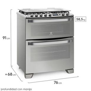 Las medidas de la Cocina Electrolux 76DXR son: 91 cm de alto; 76,2 cm de ancho; y 69,7 cm de profundo.