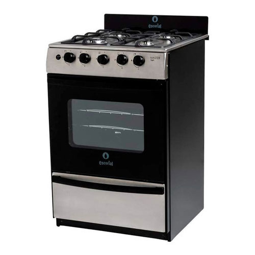 La Cocina Escorial 56cm Master Style Inox ofrece 4 hornallas: 1 grande y 3 medianas, y encendido electrónico de una mano. El interior del horno está enlozado en polvo electrostático y tiene una práctica luz, mientras que en su exterior dispone de puerta con doble vidrio. Por otro lado, posee doble parrilla extraíble.