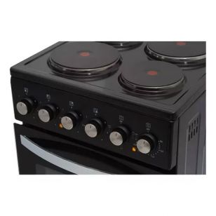 La COCINA KANJI ELÉCTRICA NEGRA KJH-EKB001V tiene una capacidad de horno de 58Lts. Cuenta con cuatro anafes distribuidos estratégicamente, 2 de 145 mm con una potencia de 1000W cada uno y 2 de 180 mm con una potencia de 1500W cada uno, que permiten cocinar simultáneamente diferentes preparaciones con precisión y control