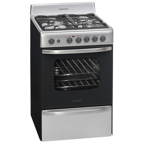 La Cocina Longive Multigas Inox 19501X tiene encendido electrónico a una mano, un quemador doble corona que combina diferentes potencias para una óptima cocción con grandes utensilios, grill eléctrico, termostato y timer.