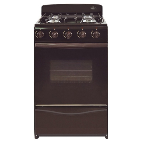 La COCINA OKEY PETIT MARRON es totalmente enlozada, tiene cuatro hornallas de alta potencia y rejas de fundición gris.