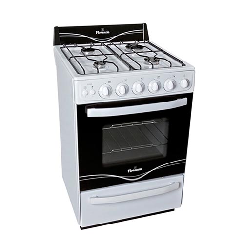 La COCINA FLORENCIA 5536A incluye encendido electrónico en horno y hornallas, cajón parrilla deslizable, válvula de seguridad, timer y luz en el horno.
