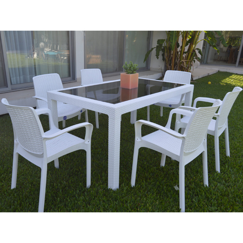 - Combo Mesa Indonesia + 6 Sillas Guinea Simil Ratan Voss Blanco