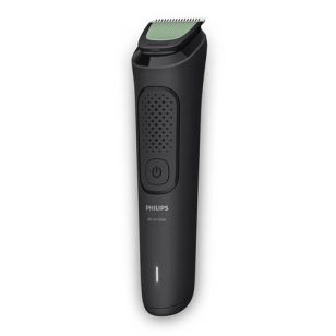 Equipado con 10 accesorios enjuagables, el Cortabarba Philips Multigroom MG3931/15 ofrece múltiples opciones de grooming para cabello, barba, cuerpo e higiene íntima. Incluye funda simple, cepillo de limpieza y cubierta de precisión con ajustes finos de 0,5 a 16 mm.