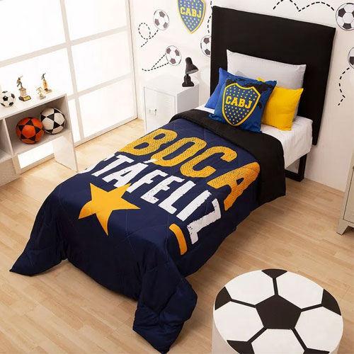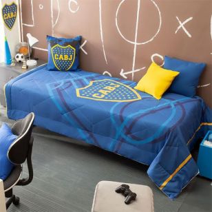 - Cubrecama 1 1/2 plazas Estampado Digital Boca Juniors Potrero