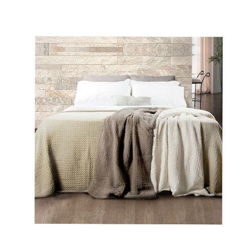 El CUBRECAMA PALETTE KEANIA 2 1/2 esta compuesto por 100% algodón, ademas es suave al tacto con entramado rustico. Las medidas son las siguientes: 240 x 220 CM