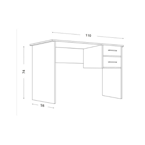 El ESCRITORIO RICCHEZZE MESINA1.10 PINO BCO/NEBRASKA 3-47-030-57/59 está fabricado en melamina, lo que le aporta durabilidad y fácil mantenimiento. Cuenta con dos cajones equipados con correderas metálicas que permiten un deslizamiento suave y práctico, además de manijas metálicas que le otorgan un toque moderno y funcional.