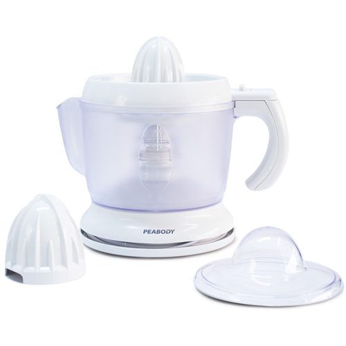 El EXPRIMIDOR PEABODY E-EC30 presenta las siguientes características: Funcionamiento mecánico presionando el cítrico sobre el rotor, pico vertedor antigoteo, pies antideslizantes, funcionamiento silencioso, espacio guardacables, 2 cabezales ajustables a distintos tamaños de cítricos: pequeño y grande, 1 Lt de capacidad, filtro con regulación de paso de pulpa y piezas desmontables para fácil limpieza. Origen China.