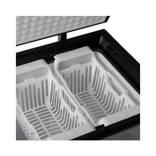 El FREEZER INERLO 215L INVERTER R600 PLATA FIH-270 P++ incluye canastos plásticos para una organización sencilla y ruedas de alta resistencia que facilitan su movilidad. La puerta robusta cuenta con una manija ergonómica, brindando comodidad al abrir y cerrar el aparato. Además, el interior del gabinete está fabricado en electrozincado y prepintado blanco, mientras que el exterior tiene un acabado metalizado, garantizando durabilidad y estética.