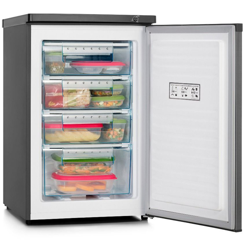 En su interior el FREEZER VERTICAL VONDOM FR55 tiene 4 cajones de plástico para almacenar y separar lo que se desee freezar; e inversión de puerta para mayor comodidad y utilidad.