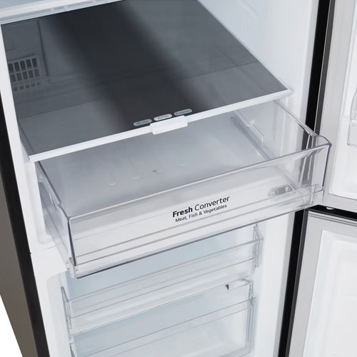La Heladera No Frost Inverter LG 335L VB33BPM combina elegancia y funcionalidad con su diseño en color negro y formato bottom freezer, que optimiza la organización interna. Su Moist Balance Crisper controla la humedad en el cajón de frutas y verduras, manteniendo los alimentos frescos por más tiempo.