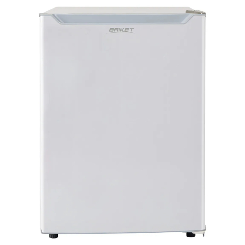 La HELADERA BRIKET SIN FREEZER BK1F1010 es de color blanco y tiene una capacidad total de 146 litros. Es una heladera tipo frigobar con clasificación energética clase B. Posee cajón de frutas, compartimiento de huevos, compartimiento de latas y pies niveladores y con rotación.