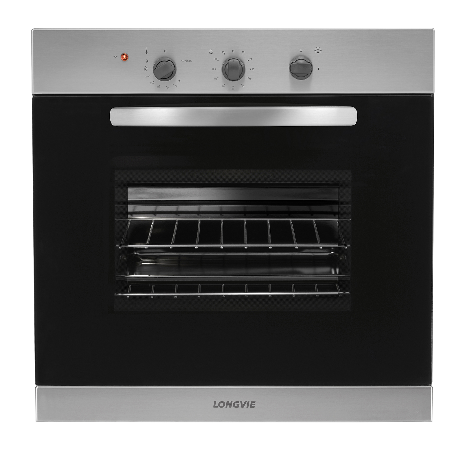 El HORNO LONGVIE H1500XF cuenta con timer con señal acústica, encendido a una mano, luz interna, termostato de variación continúa de 150 a 270ºC y grill eléctrico con luz indicadora de funcionamiento.