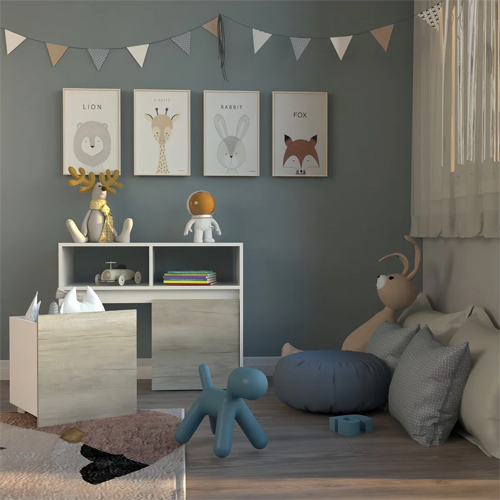 El Juguetero Table's 2 Cajones C/Rueda Nevado/Everest 3037 incorpora ruedas que facilitan su desplazamiento, convirtiéndose en un mueble versátil y funcional que combina organización, resistencia y diseño para tu hogar.