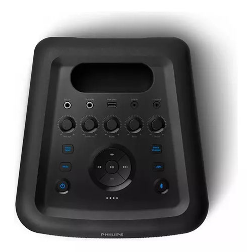 El PARLANTE PORTÁTIL PHILIPS 8" 80W TAX3206/77 cuenta con conectividad versátil, incluyendo Bluetooth, entrada de audio de 3,5 mm y USB. Las perillas giratorias permiten ajustar fácilmente el volumen, graves y agudos, así como seleccionar la fuente de sonido. Además, puedes conectar este altavoz a otros dispositivos mediante la toma de salida de línea para una mayor amplificación.