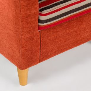 La Poltrona Atenas Color Living G3 cuenta con costura doble reforzada con pespunte, que asegura mayor resistencia y un acabado prolijo. Sus patas de madera maciza lustrada aportan estabilidad y un toque elegante que realza el diseño general.