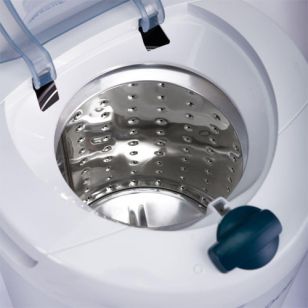 El Secarropas Koh-I-Noor B-665/2 realiza el secado de ropa por su capacidad centrífuga gracias a un motor de aceleración progresiva que además consigue acomodar la ropa en el proceso.