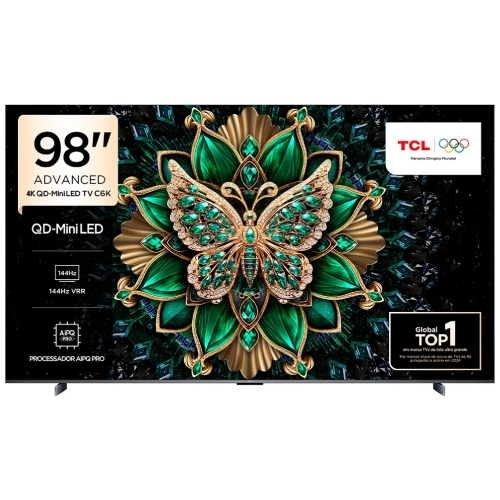 El Smart TV TCL 98” 4K UHD 98C6K-F Google TV representa un salto tecnológico en entretenimiento hogareño. Su retroiluminación Mini LED combinada con tecnología Quantum Dot (QD-Mini LED) ofrece negros más profundos, contraste superior y más de mil millones de tonos posibles, logrando imágenes nítidas y colores vibrantes. El panel HVA mate asegura un ángulo de visión amplio y reduce reflejos, manteniendo la calidad desde cualquier posición.