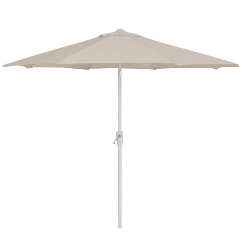 La Sombrilla Laury es una sombrilla articulada de 2,5 metros de altura, tela de 200gr de polyester, caño de acero de 34/36mm, 8 varillas de acero de 12x18mm, inclinación de metal y acabado en pintura blanca.