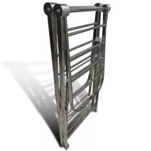 La Tendedero Reforzado Herramix 14 Varillas TEN-001 está fabricado en acero inoxidable con terminaciones pulidas, ofreciendo gran resistencia y durabilidad. Su diseño compacto permite ahorrar espacio y se pliega totalmente cuando no se utiliza, sin necesidad de armado.