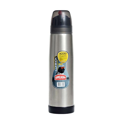 TERMO DE ACERO LUMINOX con cuerpo y botella de acero inoxidable, posee una capacidad de 1 Litro.