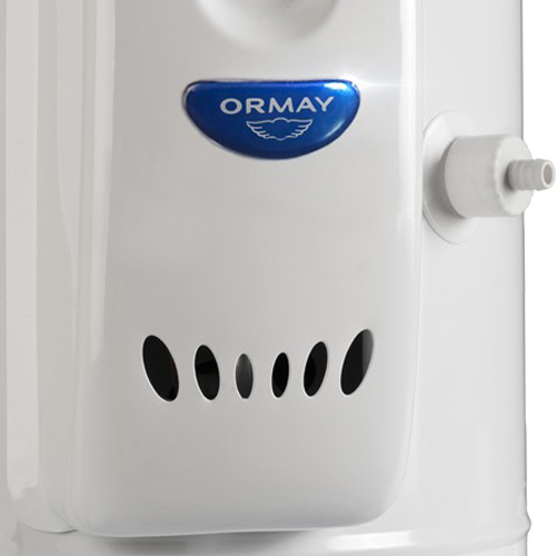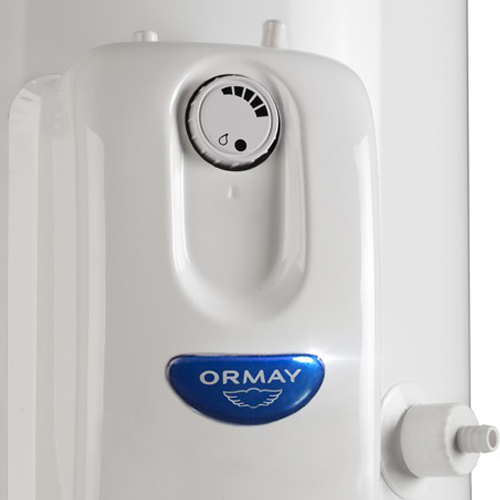 El Termotanque Ormay TQ-50 presenta un diseño en color blanco preparado para utilizarse de pie y es apto para colgar. A diferencia de un calefón, permite tener agua caliente sin depender de la presión general, aún con el uso simultáneo de varias canillas.