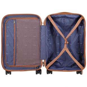 En el interior de la Valija Cabina Primicia 20" Windsor, encontrarás un tejido antimicrobiano 200D que protege tus pertenencias, un bolsillo de Mesh, un bolsillo opaco y una solapa interior con cierres dobles. Las cintas de compresión ajustables aseguran un orden óptimo durante tus viajes, haciendo que cada trayecto sea una experiencia refinada.