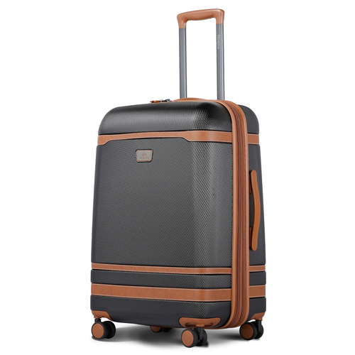Construida con una carcasa rígida de policarbonato resistente al agua, la Valija Cabina Primicia 24" Windsor garantiza una protección duradera. Está equipada con ruedas giratorias de 360° de alto deslizamiento y un carro telescópico ajustable con tres posiciones de altura, facilitando su maniobrabilidad. Incluye también cierres reforzados, una estructura expandible para mayor capacidad y una cerradura de combinación aprobada por TSA, ideal para mayor seguridad en viajes internacionales.