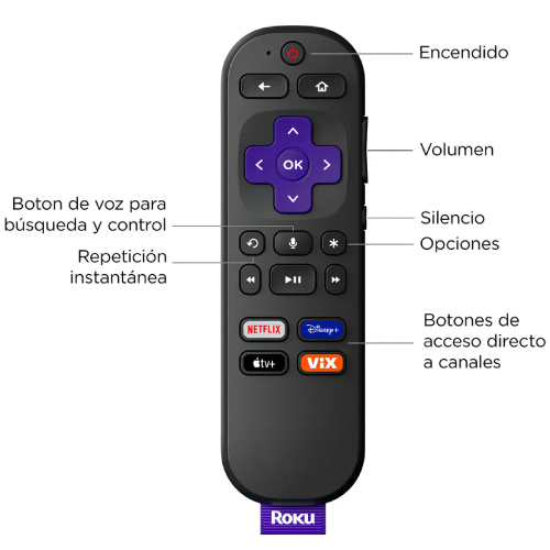 El Conversor TV 4K UHD Roku Streaming Stick Plus incluye un control remoto único con voz, que permite encender el televisor, ajustar el volumen y buscar contenido rápidamente. Su diseño elegante no bloquea puertos HDMI vecinos y se alimenta directamente del televisor, evitando cables adicionales y manteniendo todo ordenado.