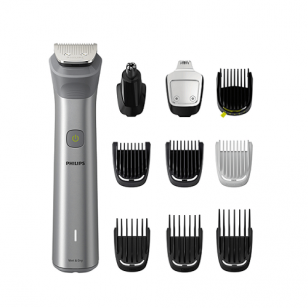 Este recortador todo en uno ofrece 10 herramientas para todas tus necesidades de afeitado. Recorta y perfila cómodamente el vello facial, recorta el pelo y arregla el vello corporal.