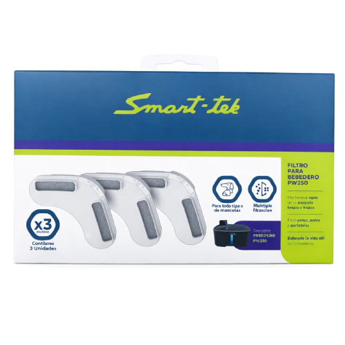 El Filtro Repuesto X3 Bebedero Para Mascotas Smart-Tek PW250 es compatible con el bebedero automático PW250, ofreciendo instalación sencilla sin necesidad de herramientas. Su alta eficiencia de filtrado atrapa residuos y partículas no deseadas, mejorando la calidad del agua diaria.