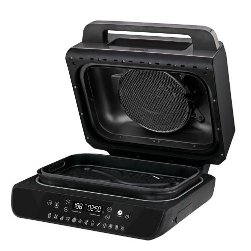 La FREDIDORA DE AIRE/GRILL PEABODY 6 LTS PE-AFG03N incluye un display LED táctil con alarma sonora al finalizar la cocción y apagado automático al abrir la tapa, facilitando el uso seguro. Posee accesorios desmontables como un grill y una canasta freidora, además de la práctica función de precalentar y la capacidad de ahumar alimentos.
