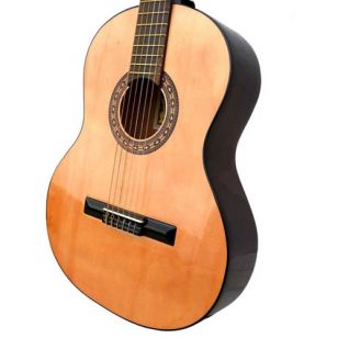 La GUITARRA GRACIA está fabricada en abedul con filetes negros. Su brazo es de cedro paraguayo con diapasón de nogal y clavijero niquelado grabado. el material de sus cuerdas es nylon y posee un formato clasico.